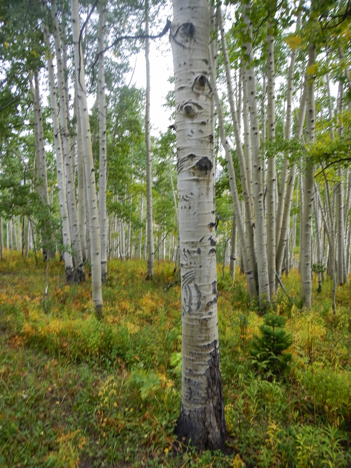 We left the corral following Chuck and his dog, half dachshund, half Corgi - he was cute. I think he had more fun than we did, and we had a lot of fun. Riding up Snodgrass Mountain through the aspen trees was very beautiful with views of Mt. Crested Butte and the surrounding mountains around every corner. Chuck showed us where the bears had left scratch marks on the aspen trees.